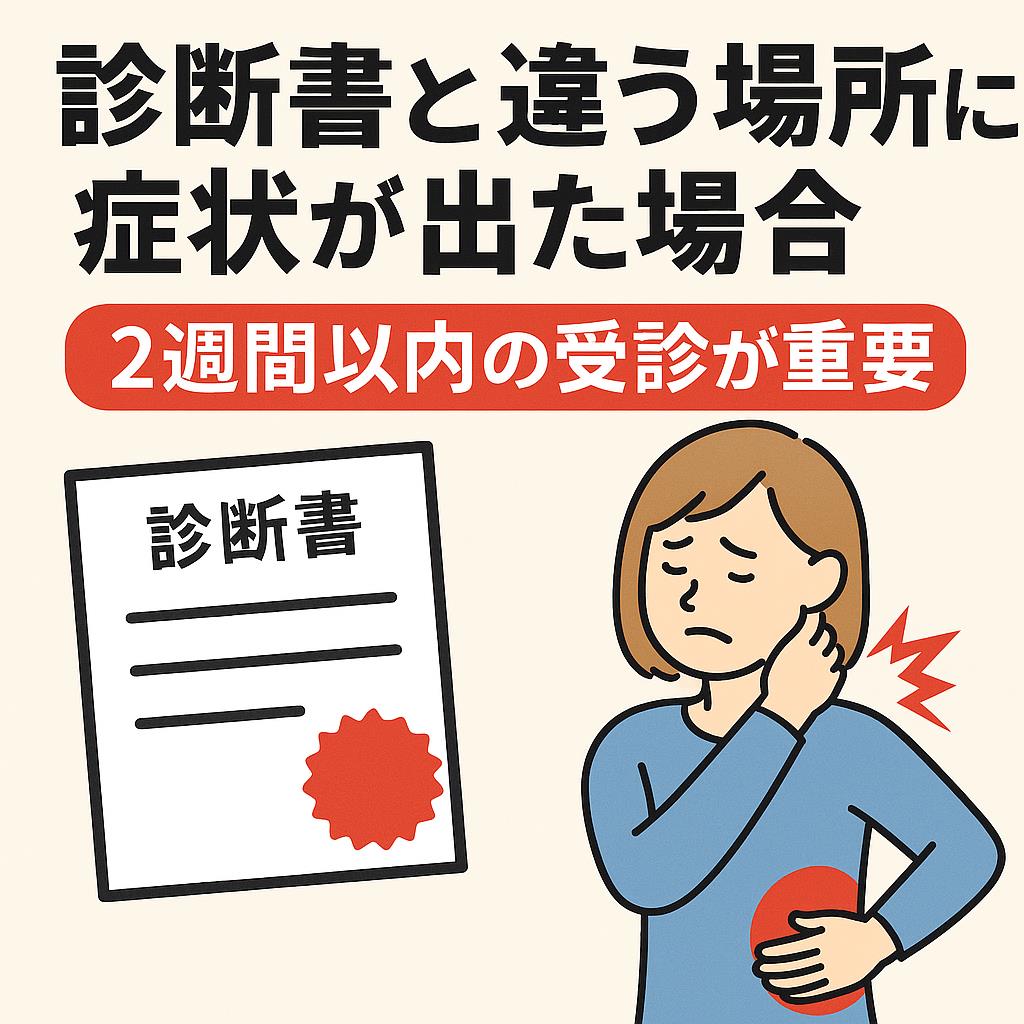 そのため、最初に病院で書いてもらった診断書と 違う部位に症状が出る ケースは珍しくありません。